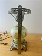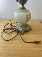Vintage Hurricane Lamp Base Green with Yellow Roses Rim 13" - 14" Tall-It works!