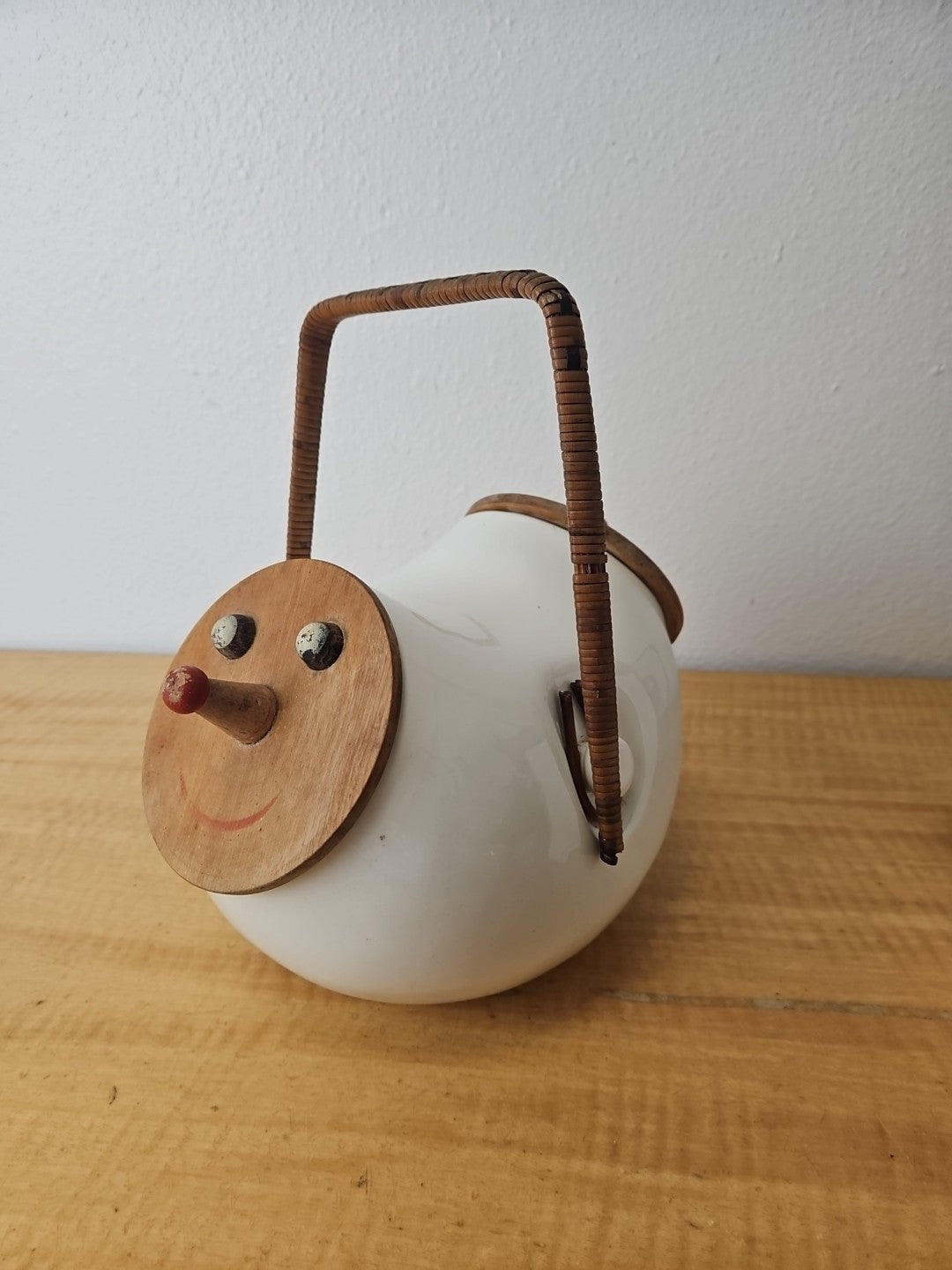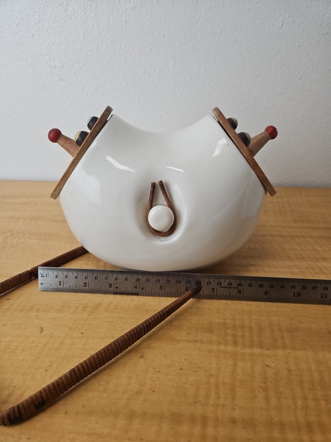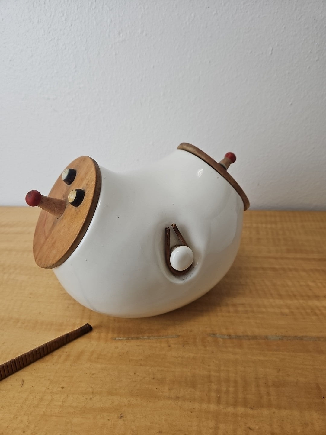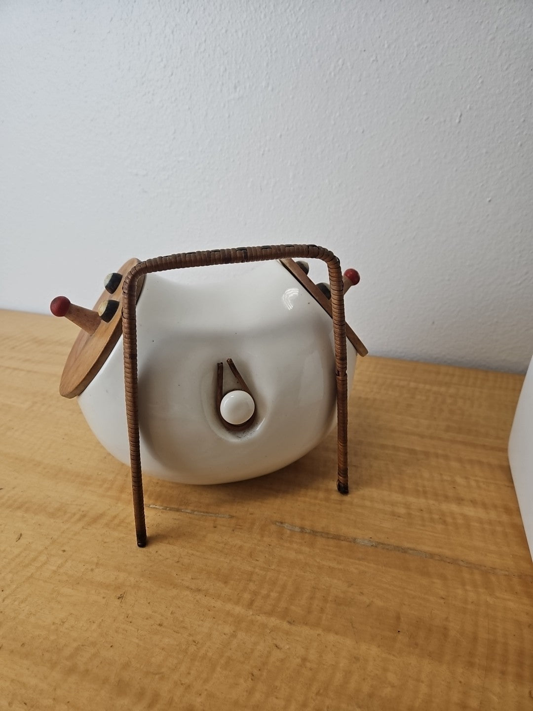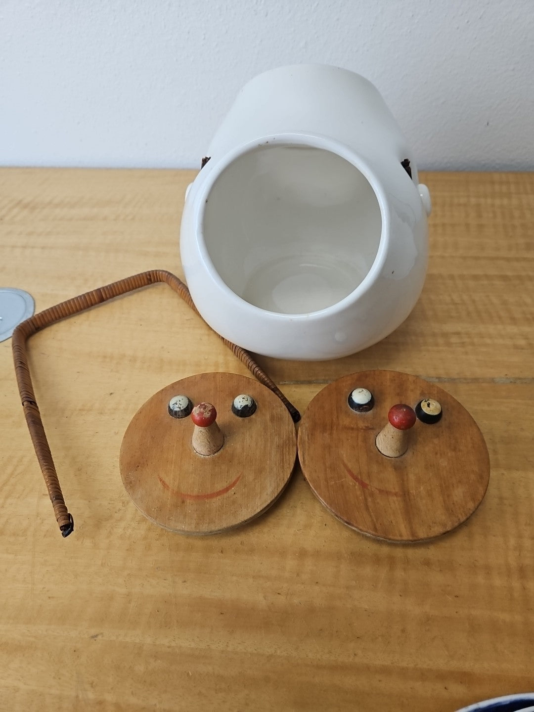 Vintage LaGardo Tackett Cookie Jar 1958 2 Face Lids Wicker Handle Egghead