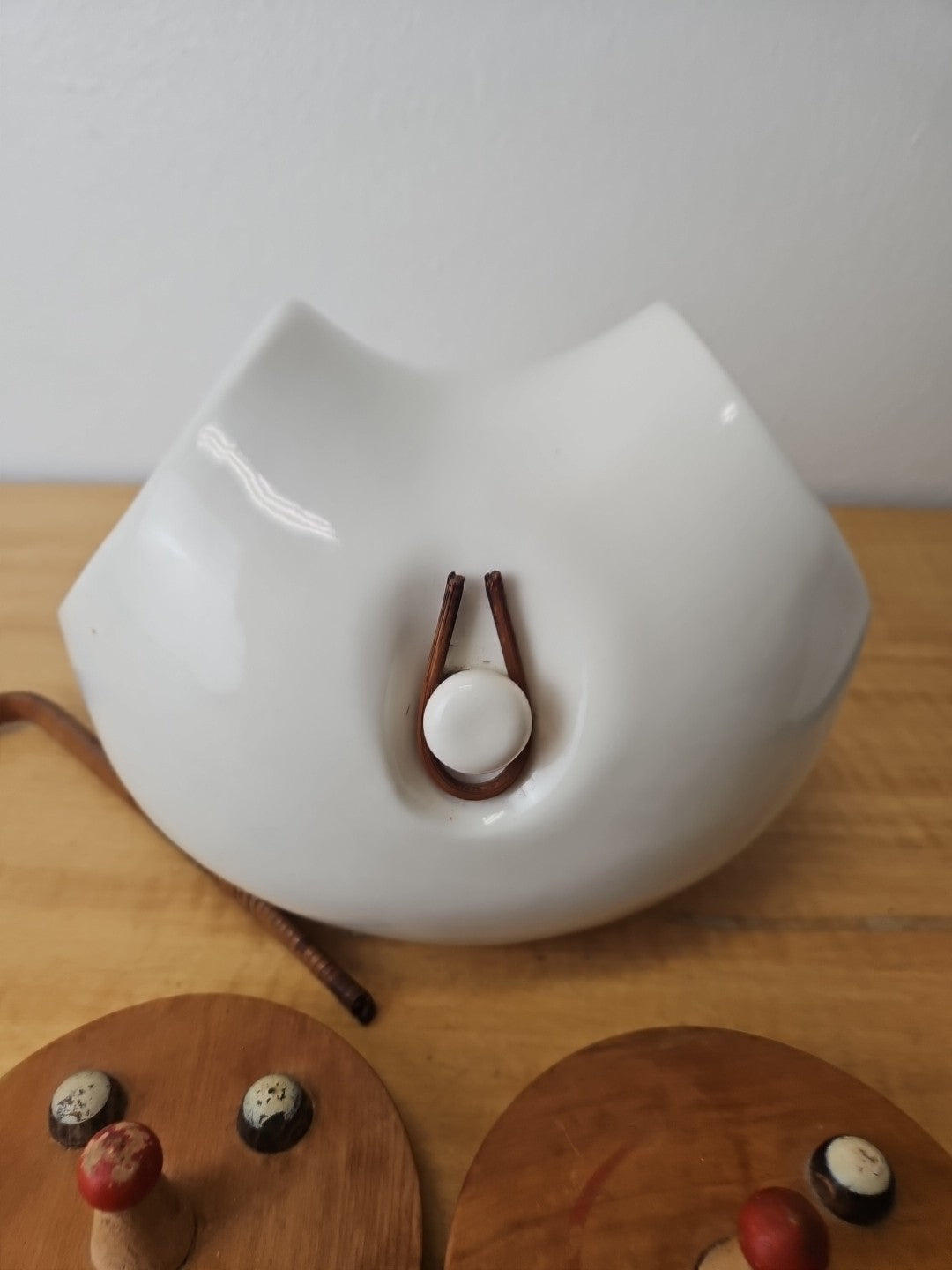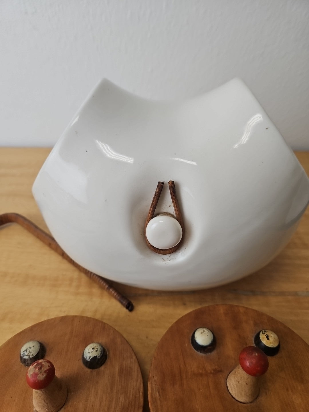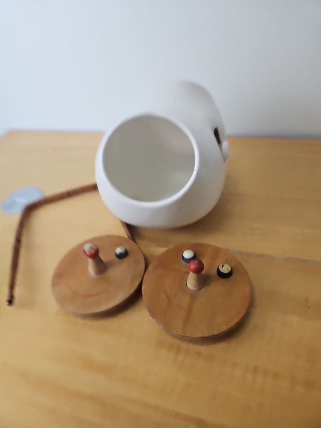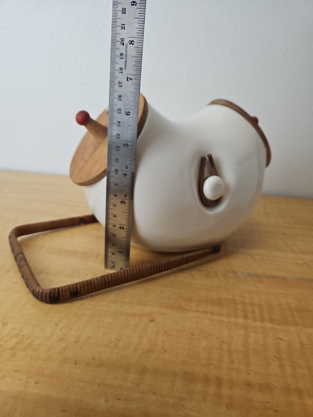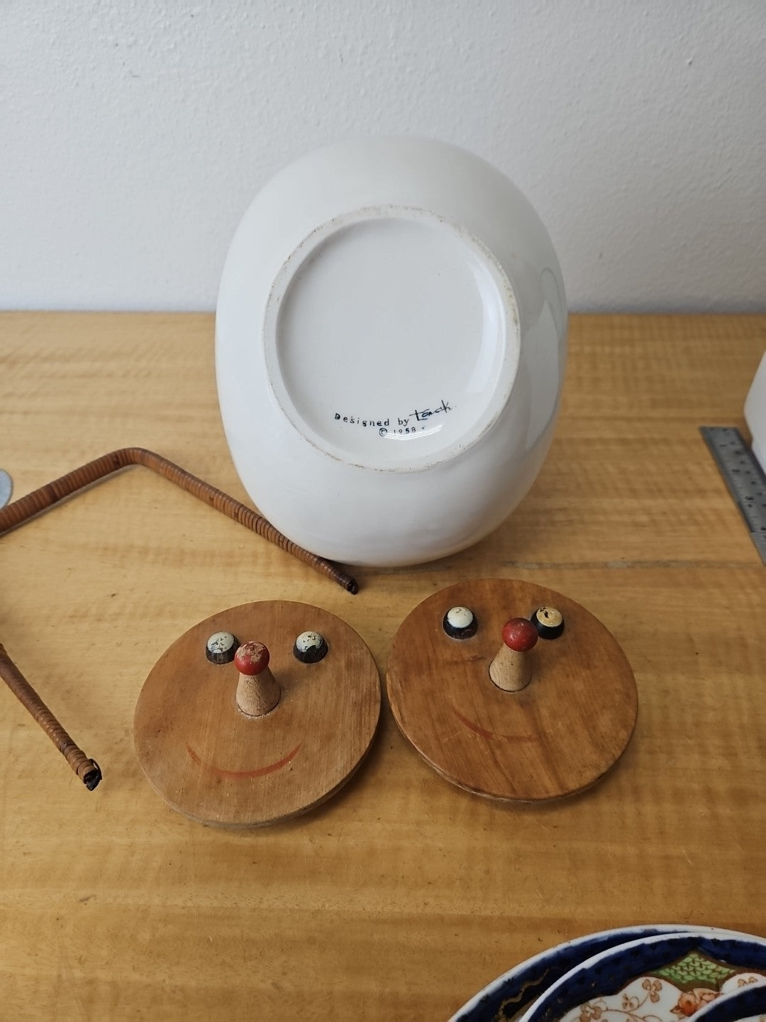 Vintage LaGardo Tackett Cookie Jar 1958 2 Face Lids Wicker Handle Egghead