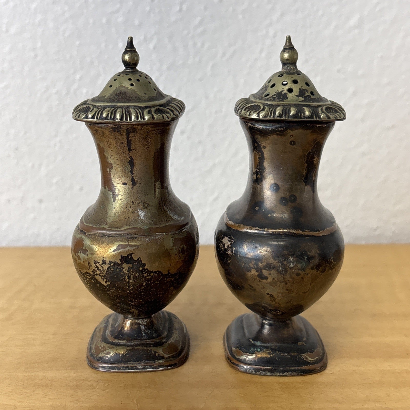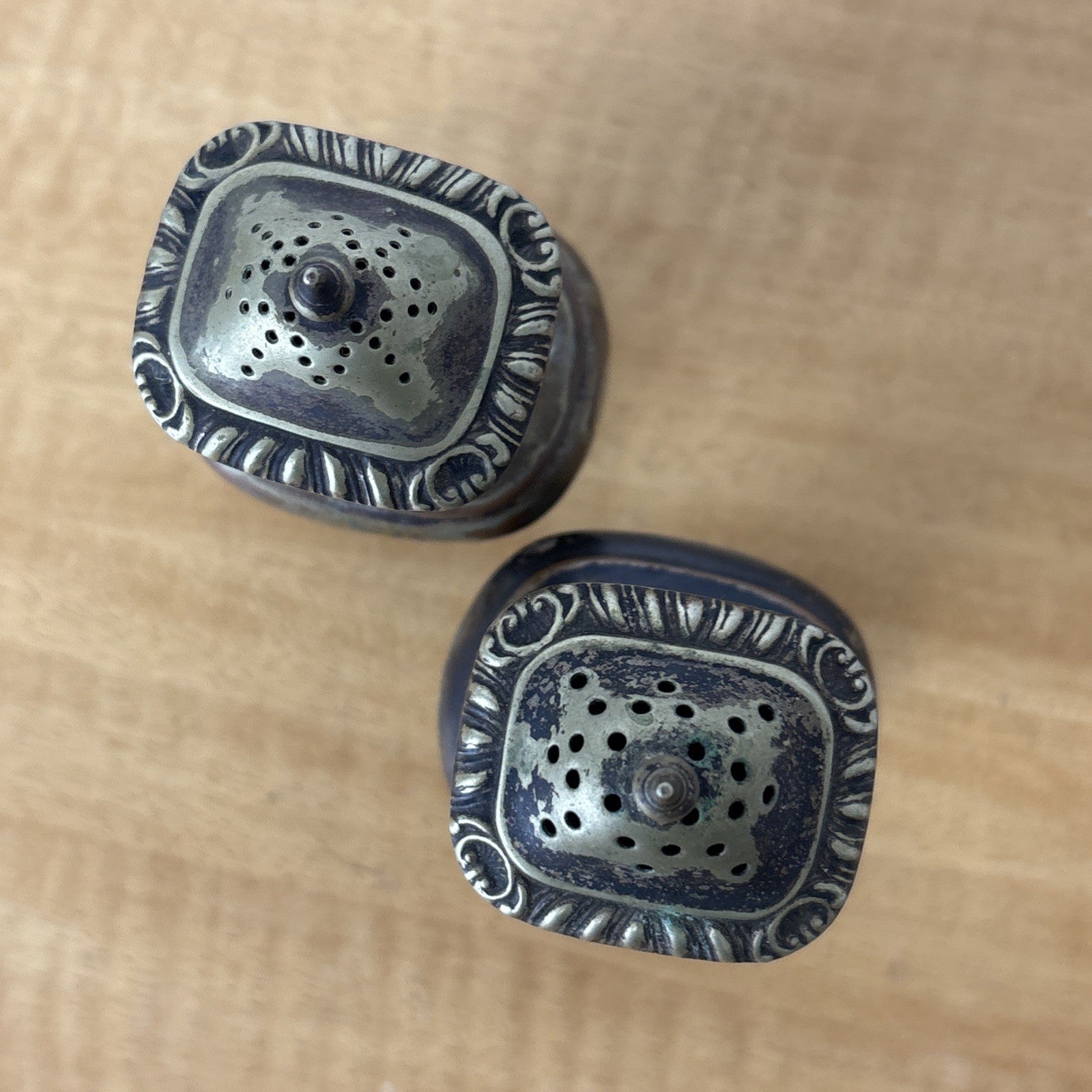 Vintage Metal Salt and Pepper Shakers Ornate Detail Made in England