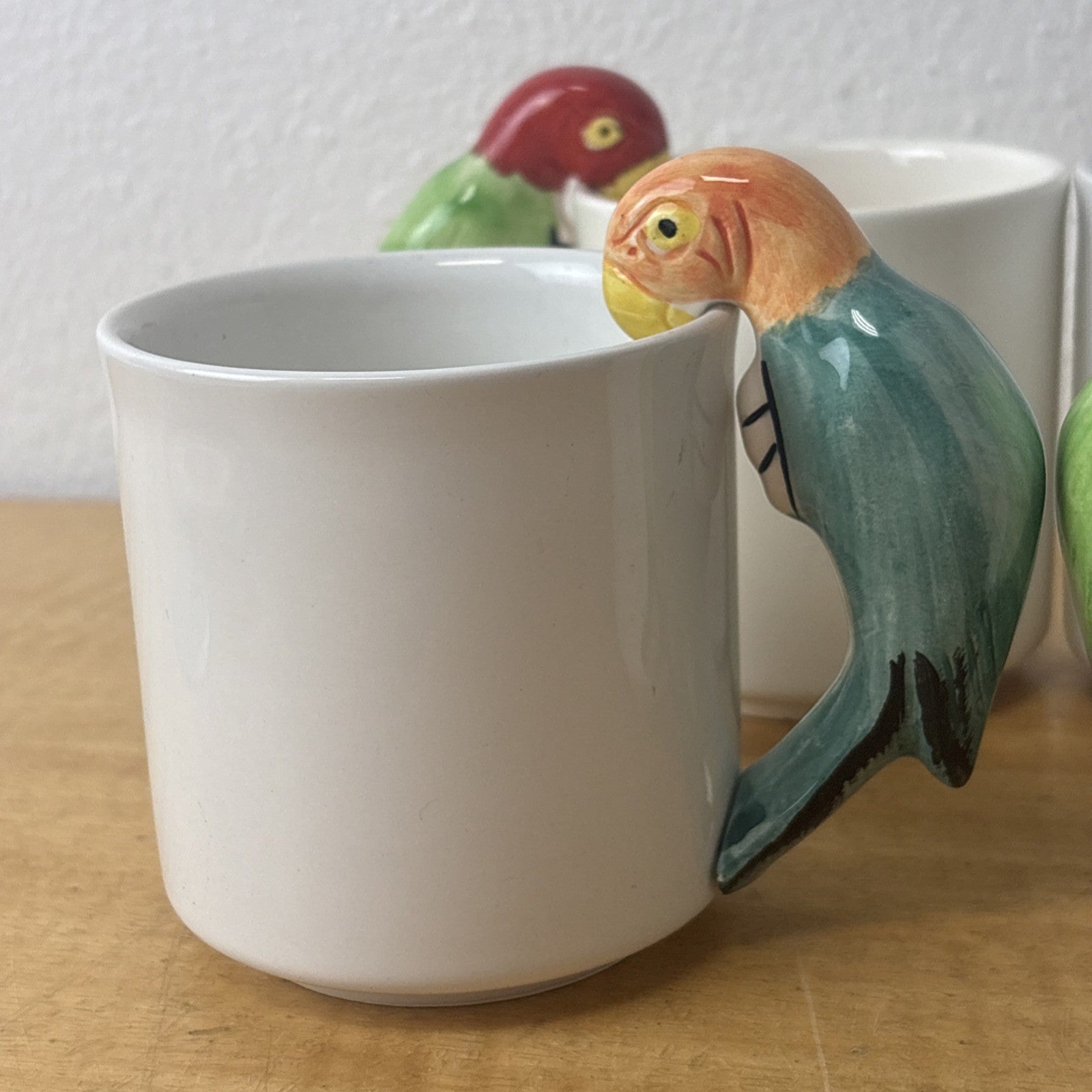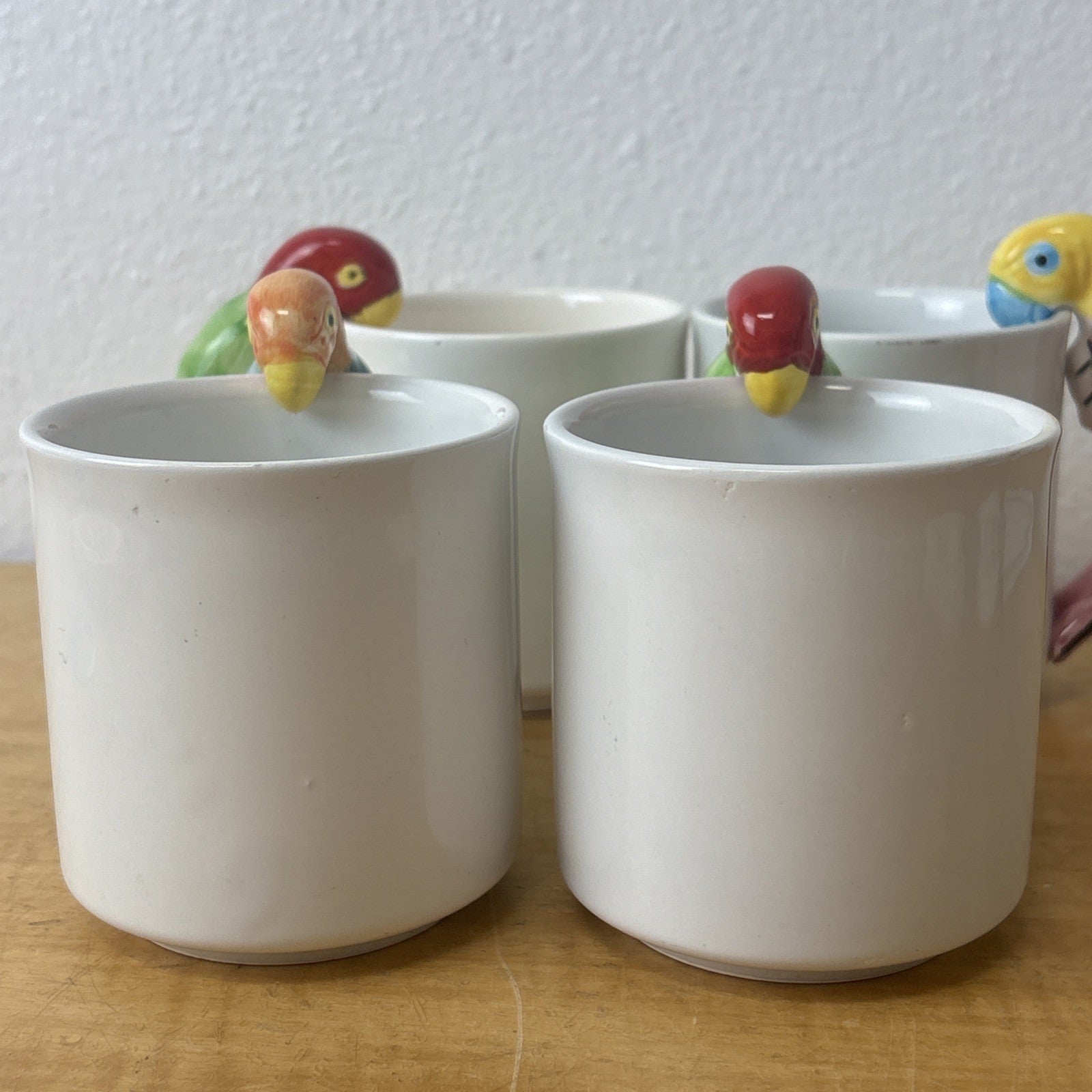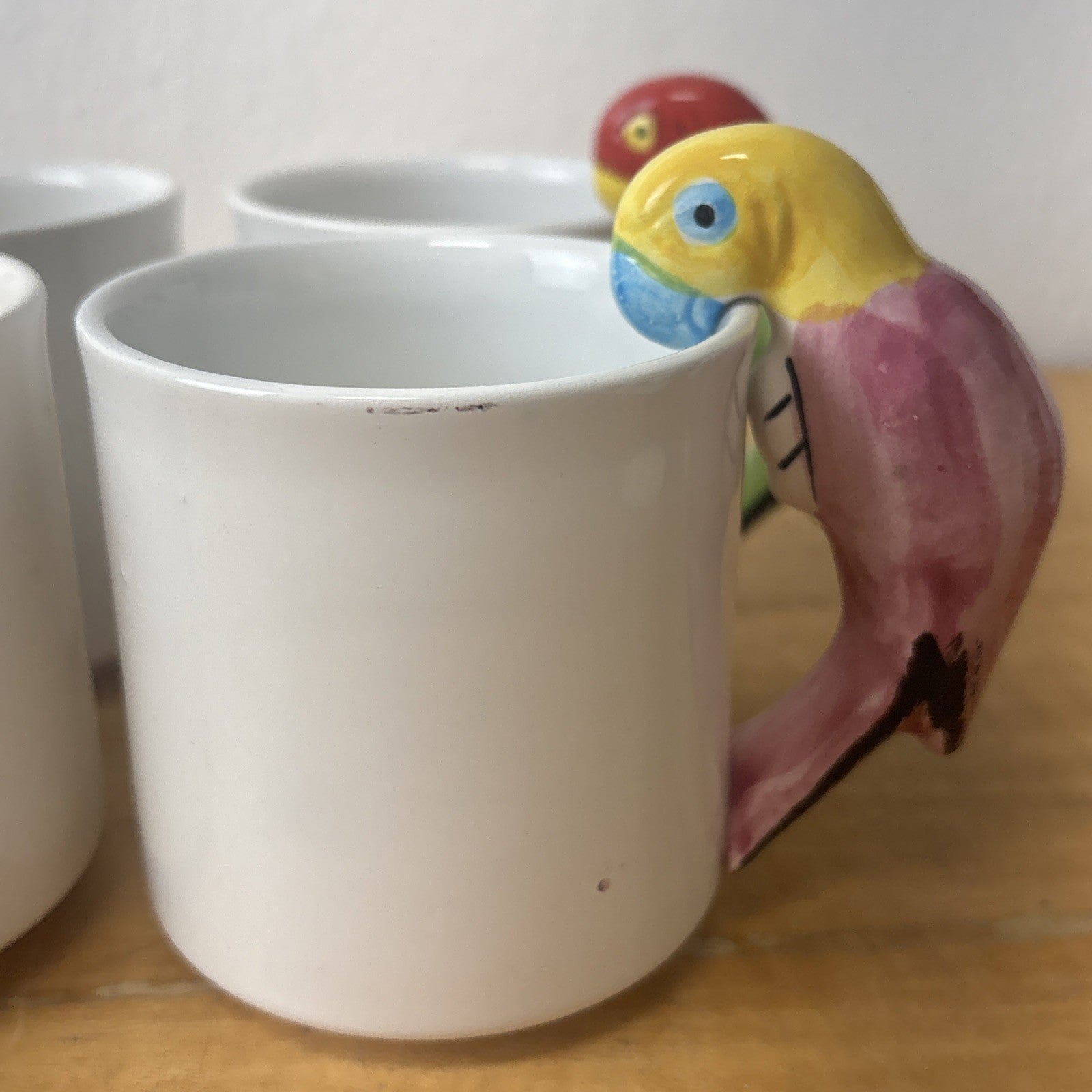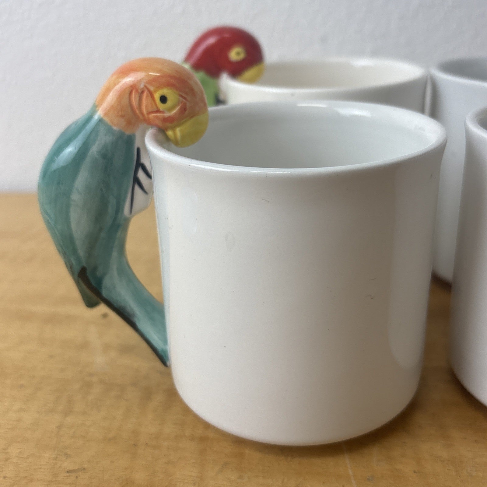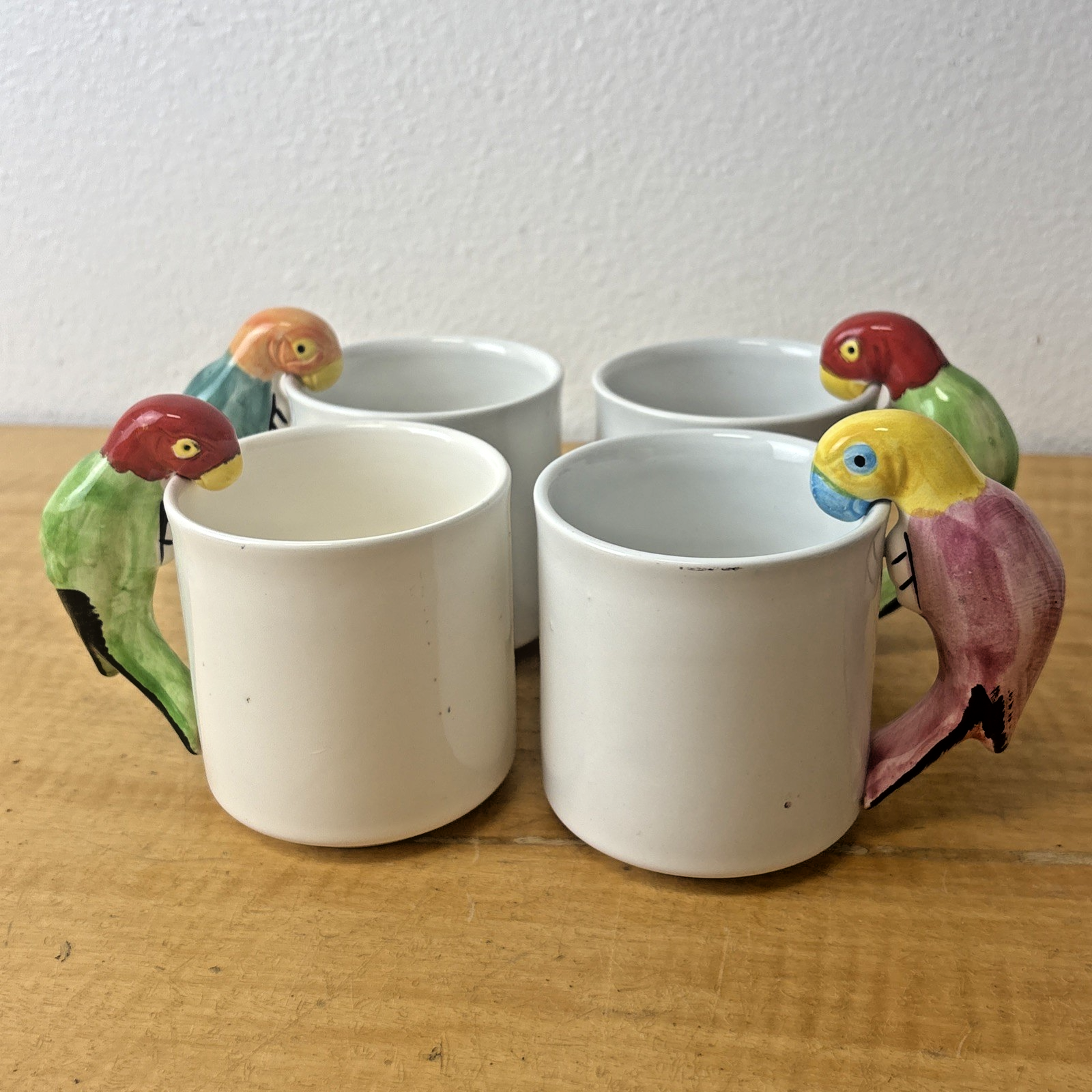 Vintage PARROT Pier 1 Albert Kessler Coffee Mugs with Parrot Handles Set of 4