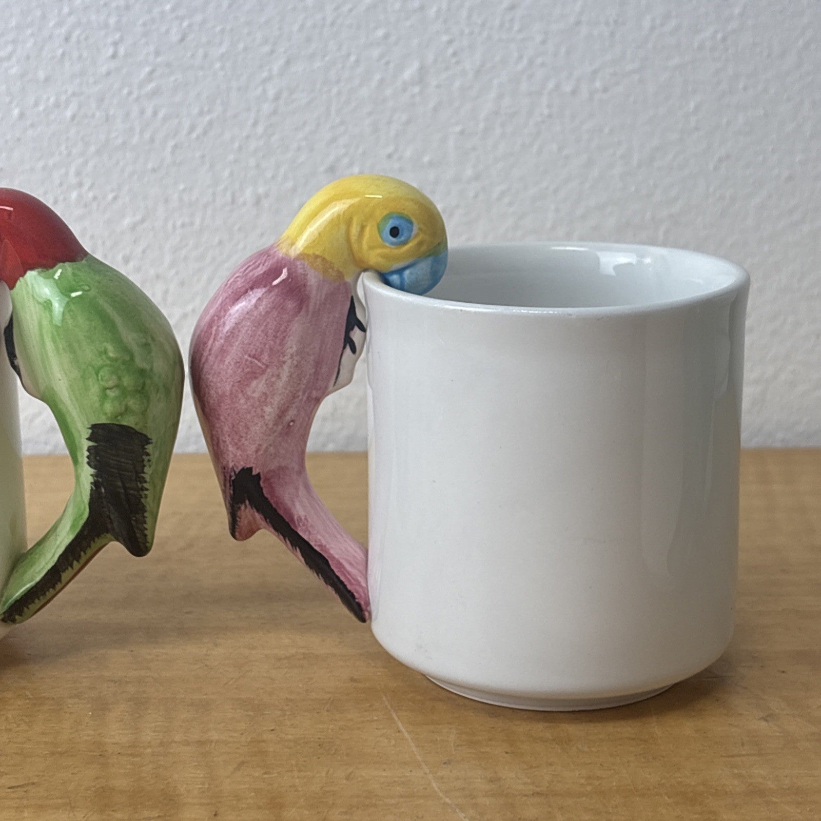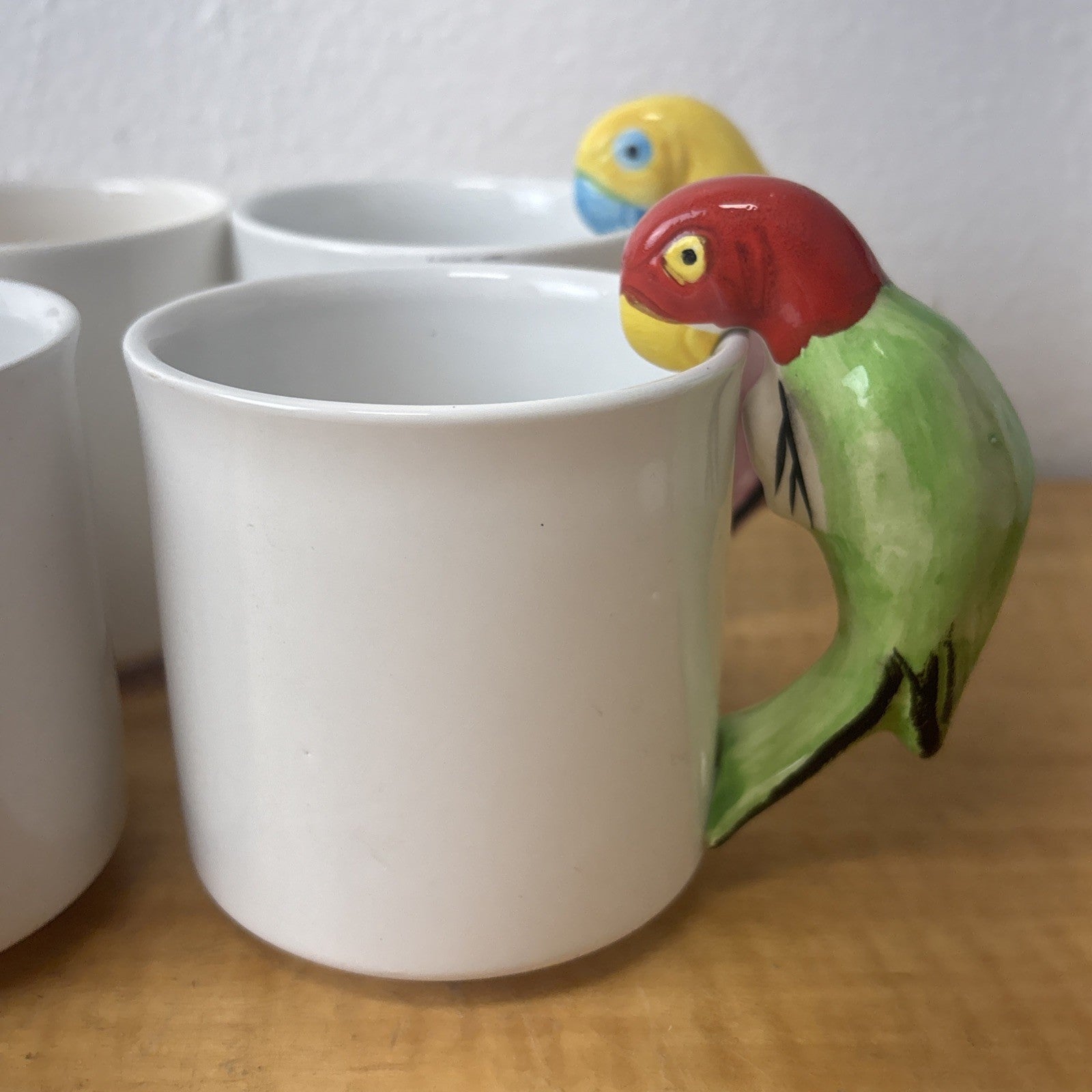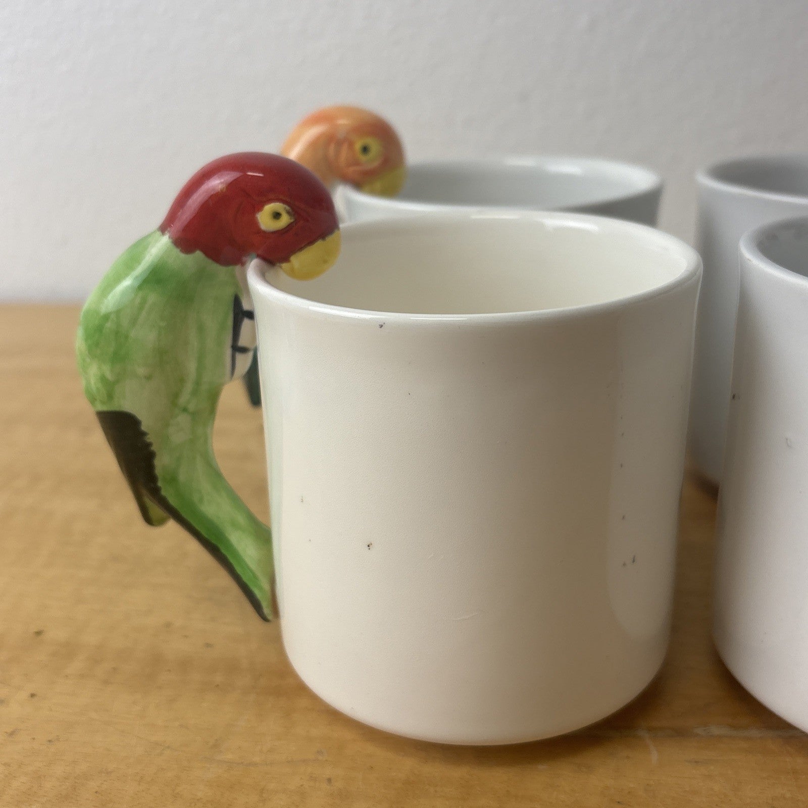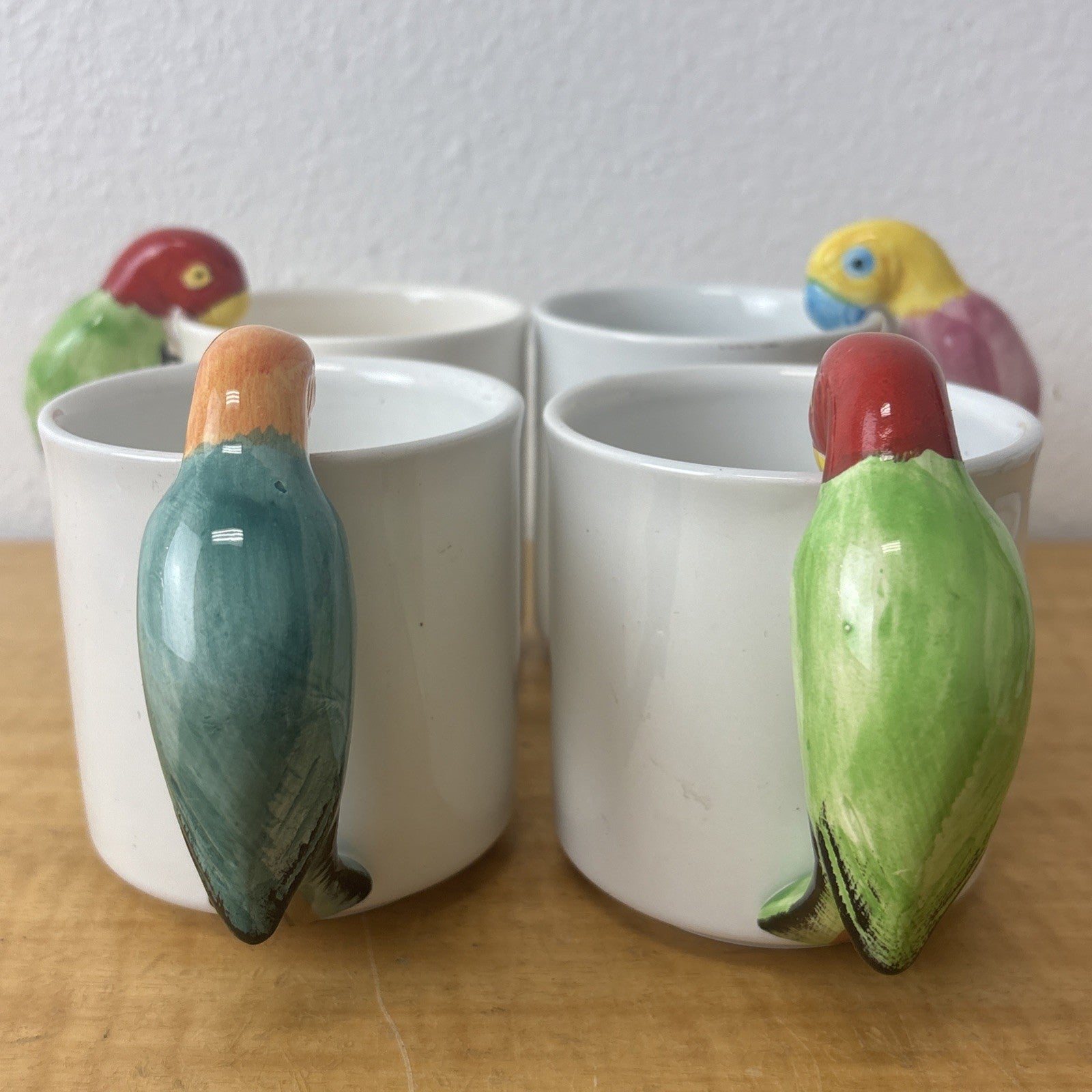 Vintage PARROT Pier 1 Albert Kessler Coffee Mugs with Parrot Handles Set of 4