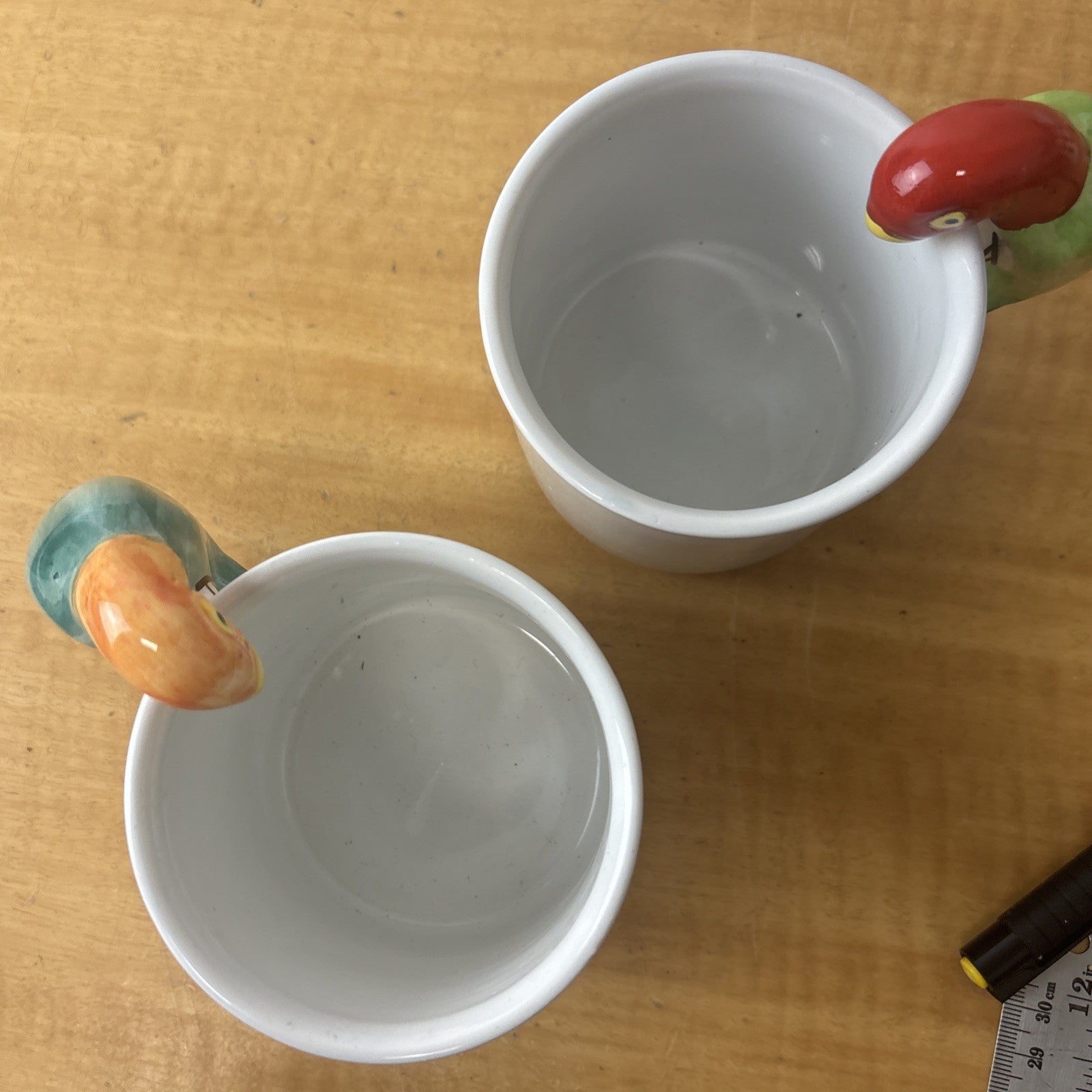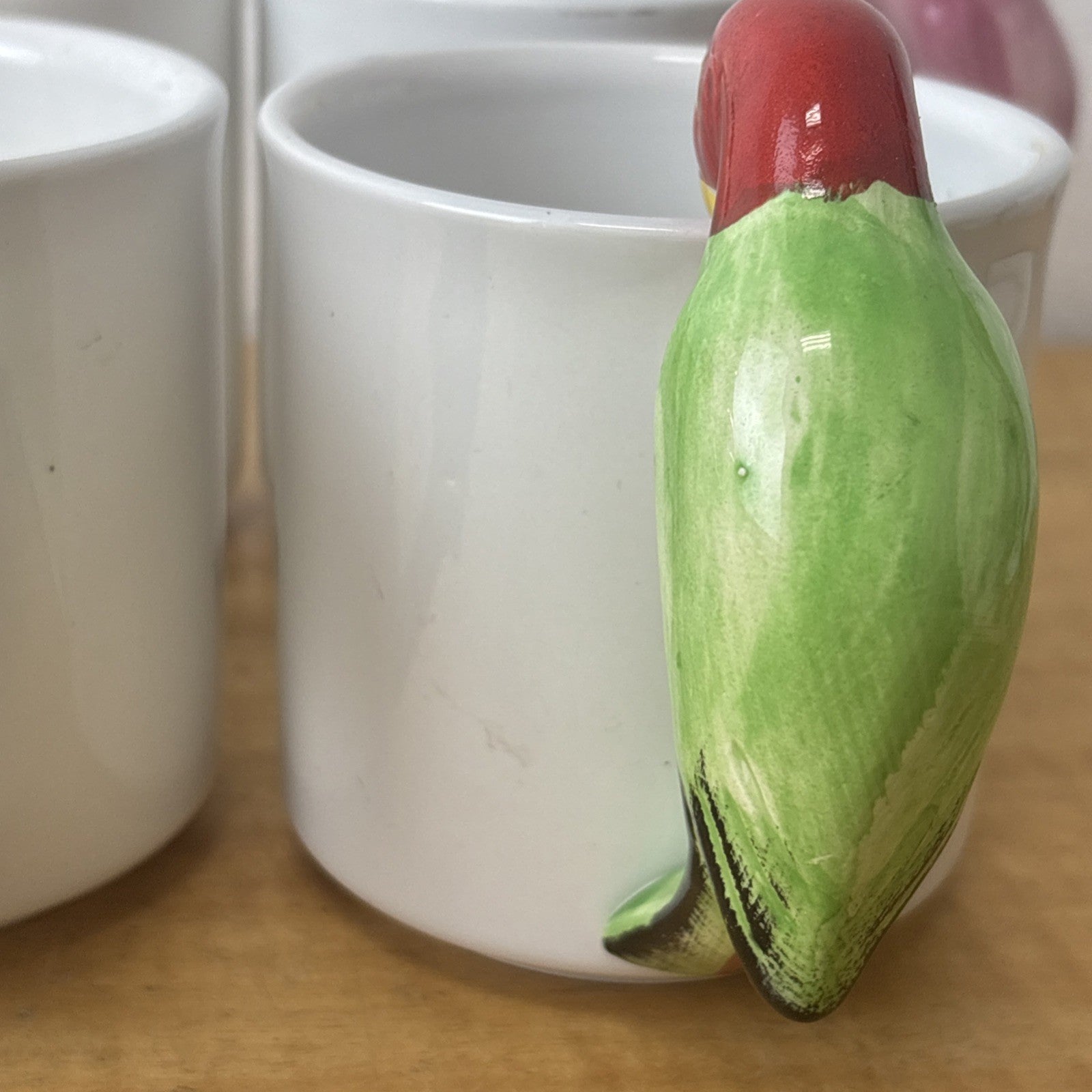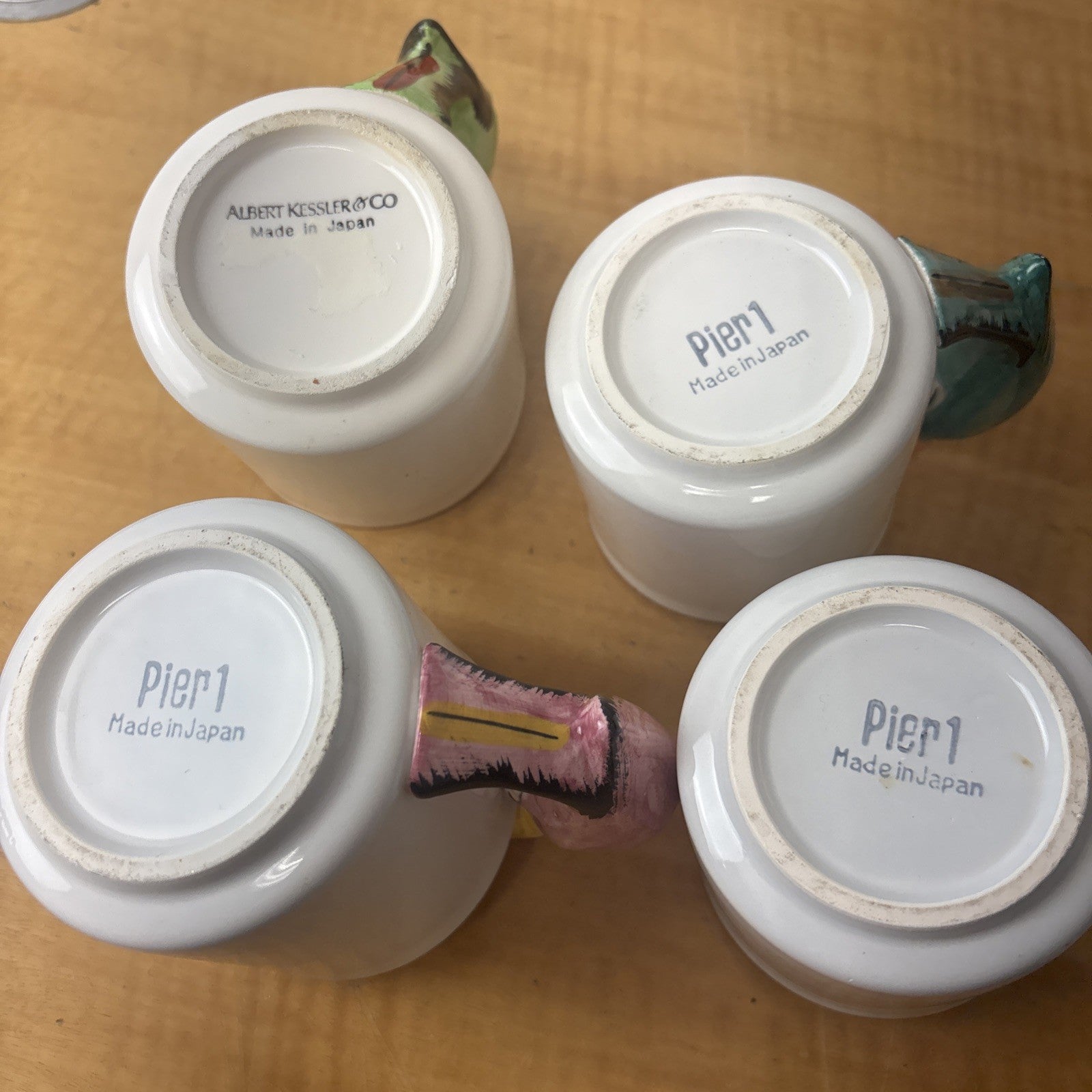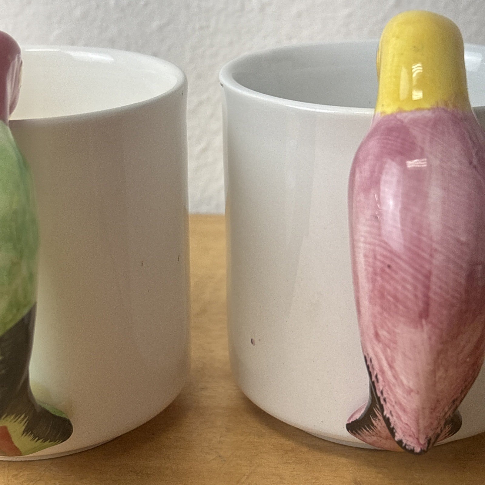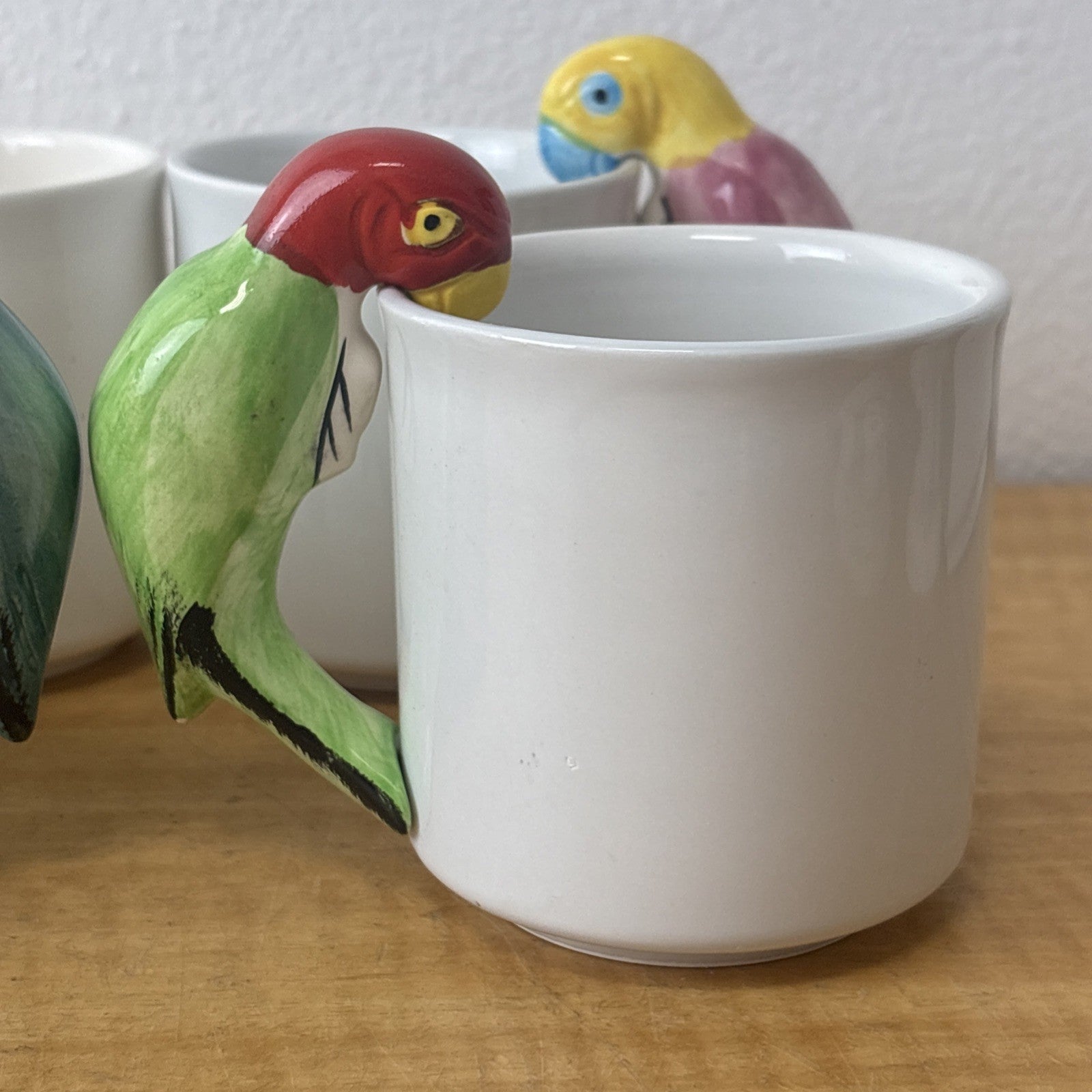 Vintage PARROT Pier 1 Albert Kessler Coffee Mugs with Parrot Handles Set of 4