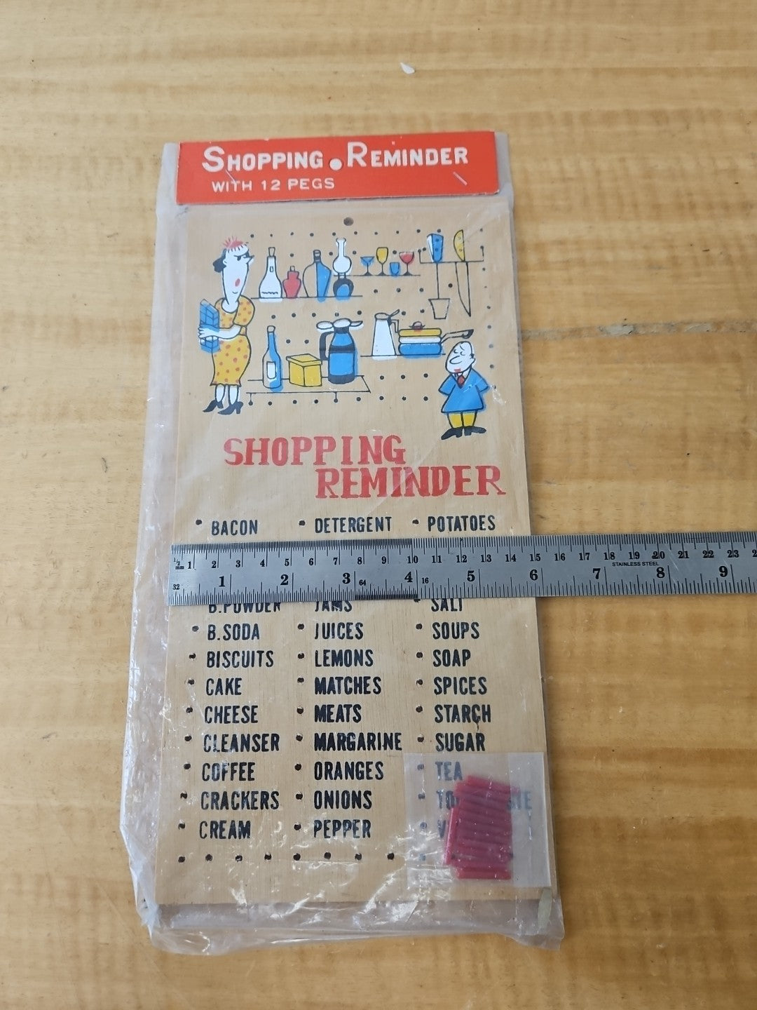 Vintage Shopping Reminder Board with 12 Pegs MCM in package unused