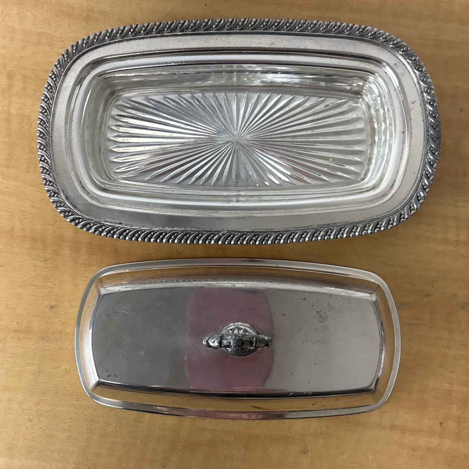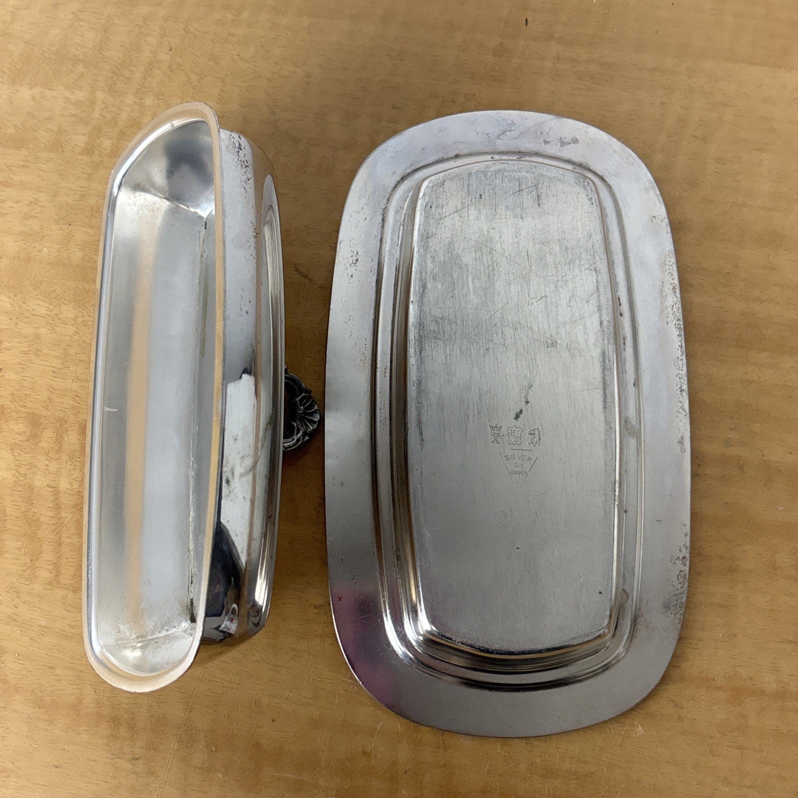 Vintage Silver on Copper Hartford Sterling Co. Butter Dish w/ Glass Insert