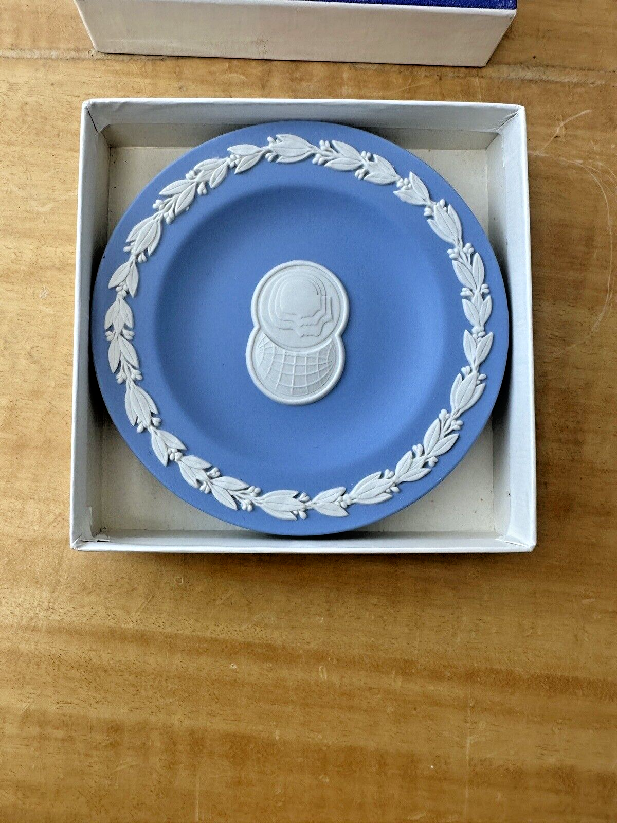 Vintage Wedgewood Jasperware Portland Blue 3-Slot Ashtray England With Box