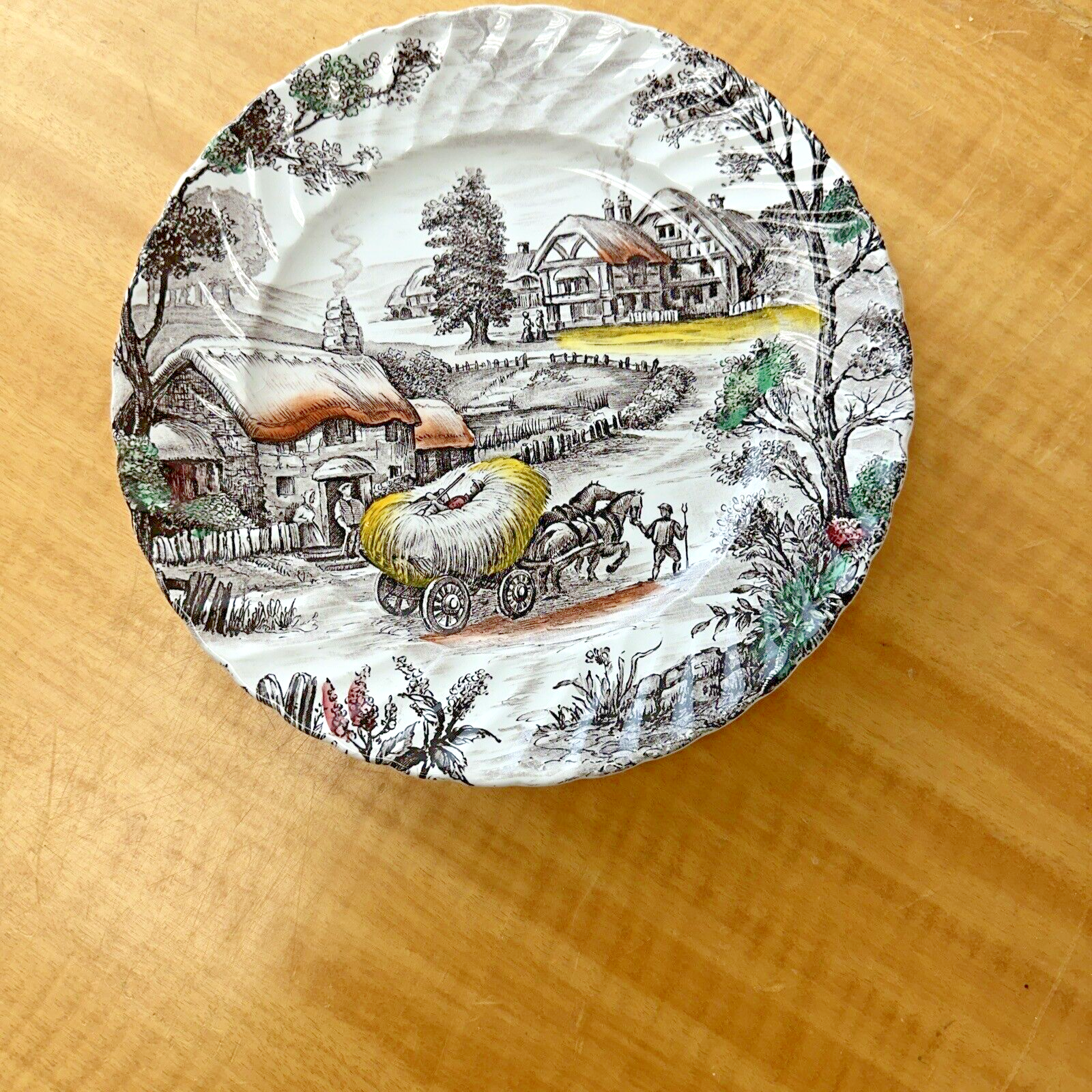 Vintage Yorkshire England genuine hand engraved ironstone 8" CAKE/SALAD Plate