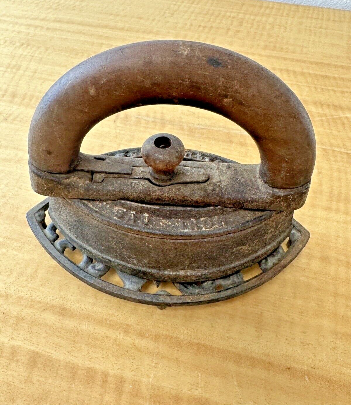 Vtg 1900s Antique Dover Cast Sad Iron Insert Removable Wood Handle Primitive