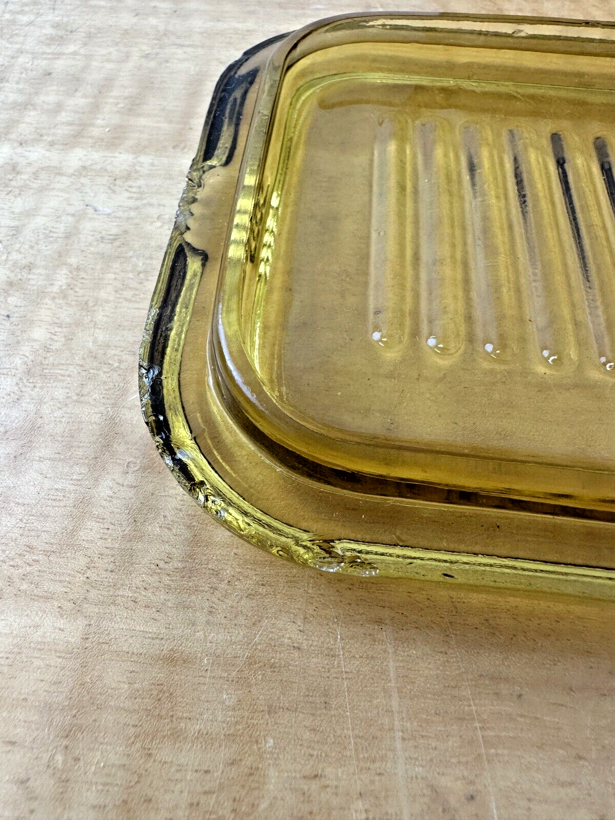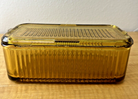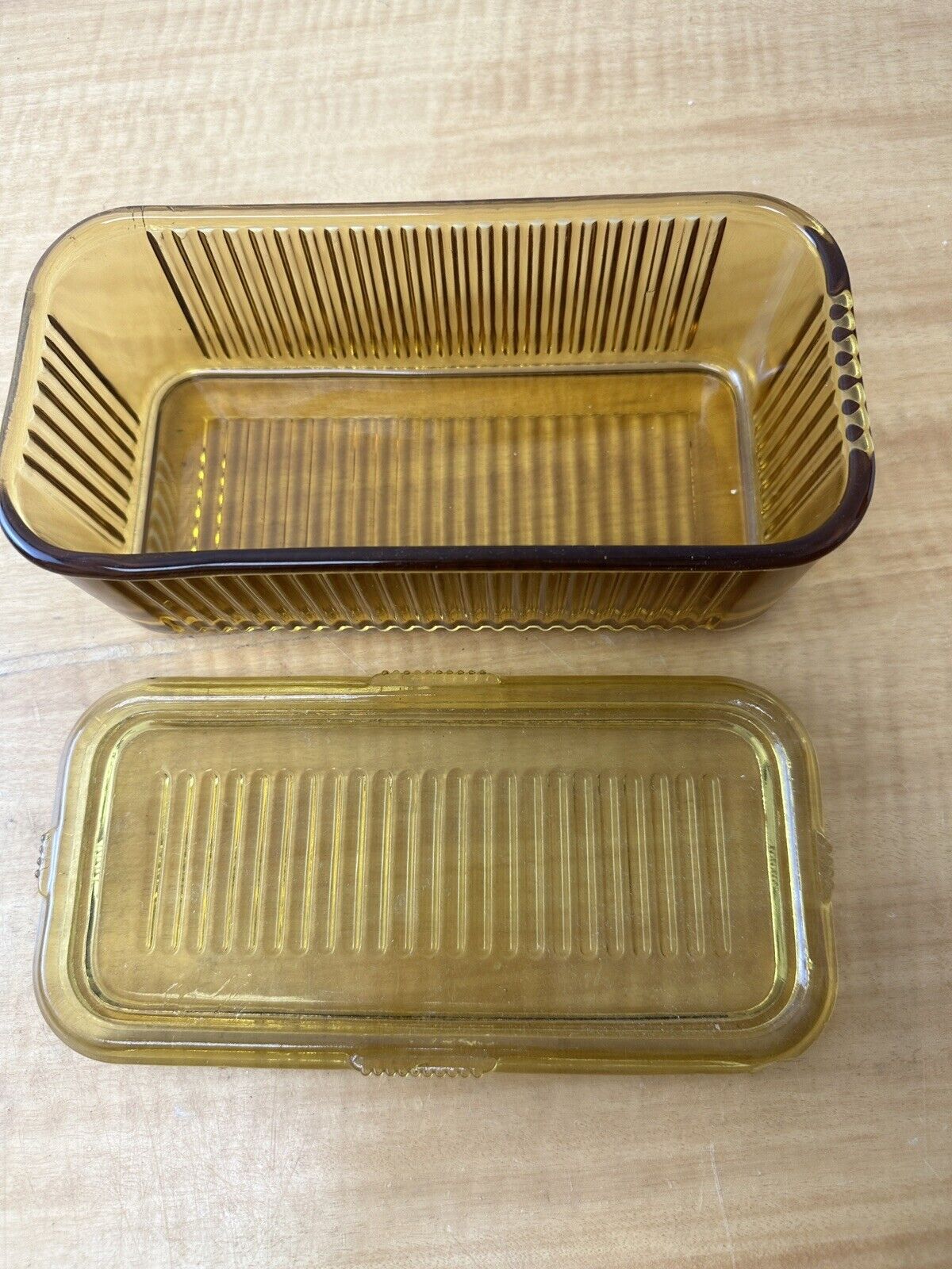 Vtg Federal Glass Amber Ribbed Refrigerator Dish w/Lid
